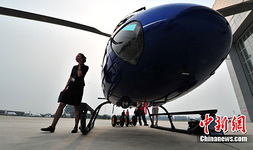 圖為能容六名人員的輕巧小松鼠直升機在展會(huì )上成為明星。中新社發(fā) 鄒憲 攝