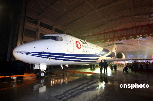 資料圖:中國首架自主知識產(chǎn)權噴氣支線(xiàn)客機ARJ21-700飛機