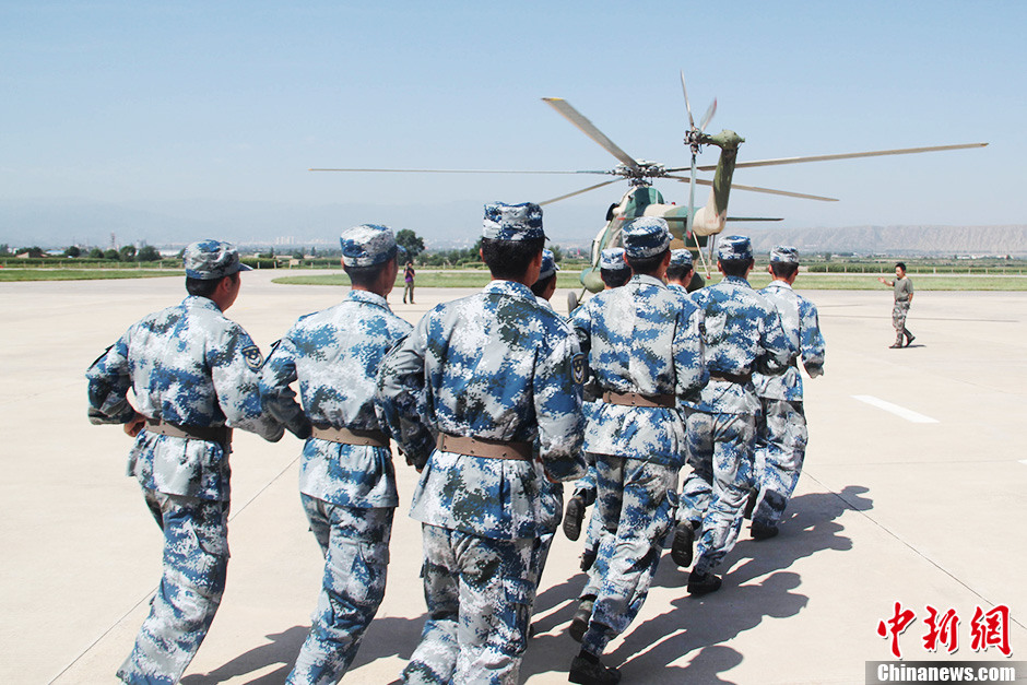 7月24日,空軍某航運團接到飛赴災區救援的命令后,直升機緊急升空,在克服復雜氣象條件和地形下飛行2個(gè)多小時(shí),成功趕在下雨前將4名重傷病員轉運出岷縣災區,據悉,這四名重傷員為不同部位粉碎性骨折,病情最嚴重的是一位胸腔骨折的80歲高齡老人,最小的僅12歲,均被安全轉移到蘭州市條件更好的醫院。中新社發(fā) 顏劍光 攝