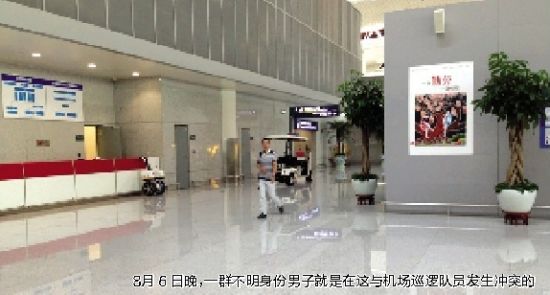 周先生目睹了事件全過(guò)程。 “當時(shí)這幫人進(jìn)來(lái)后,根本不顧周遭環(huán)境,在里面點(diǎn)煙就抽,煙蒂隨處甩,態(tài)度囂張得很。 ”據他介紹,巡邏隊員很快趕過(guò)來(lái),要求吸煙者立即掐滅煙頭,“結果抽煙的一方不愿意,雙方很快就起了爭執,后來(lái),雙方都有很多人圍了過(guò)來(lái)。之后,就看見(jiàn)幾名男子,開(kāi)始毆打、推搡機場(chǎng)巡邏隊員。 ”