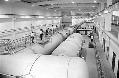 在北京市郊的雁棲湖畔,有一棟長(cháng)條形的灰色建筑,這是錢(qián)學(xué)森工程科學(xué)實(shí)驗基地的空天飛行器實(shí)驗室。建筑中有一條265米長(cháng)的巨大管道,這是“JF12復現高超聲速飛行條件激波風(fēng)洞”。
