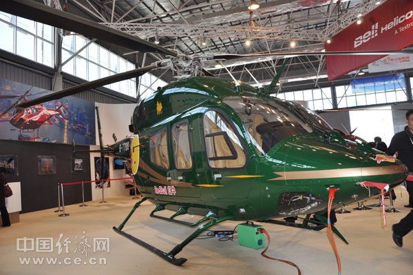 貝爾直升機公司展臺的直升機 中國經(jīng)濟網(wǎng)記者 段丹峰 攝