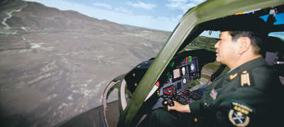 開(kāi)直升機不是每個(gè)人都有的體驗,也未必每人都敢開(kāi),模擬飛行則解決了這些問(wèn)題。在模擬訓練室里,模擬飛行教研室主任、特級飛行員黃殿義,帶著(zhù)本報記者在Z9WA/Z型模擬直升機里,體驗了一把虛擬飛行。球形3D屏幕讓人有身臨其境之感,一會(huì )掠過(guò)高山,一會(huì )飛過(guò)大海!澳M機沒(méi)有危險,能消除恐懼心理,多開(kāi)模擬機,便于以后開(kāi)實(shí)裝機!秉S殿義說(shuō)。
