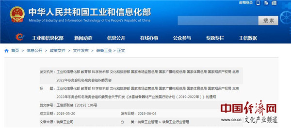 九部門(mén)關(guān)于印發(fā)《冰雪裝備器材產(chǎn)業(yè)發(fā)展行動(dòng)計劃(2019-2022年)》的通知