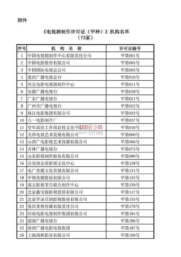 值得一提的是,由于國務(wù)院機構改革,在此次換證工作中,《電視劇制作許可證(甲種)》發(fā)證機關(guān)統一變更為國家廣播電視總局,許可證有效期由往年的1年統一調整為3年。