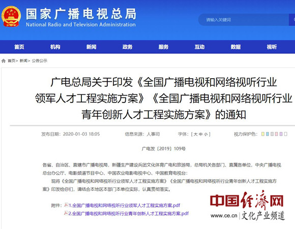 《全國廣播電視和網(wǎng)絡(luò )視聽(tīng)行業(yè)領(lǐng)軍人才工程實(shí)施方案》