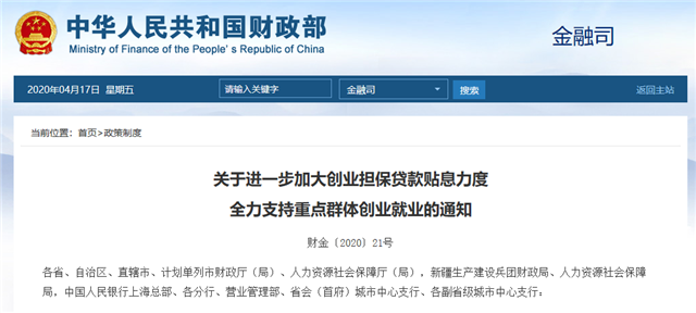 經(jīng)濟日報-中國經(jīng)濟網(wǎng)北京4月17日訊 4月15日,財政部、人力資源社會(huì )保障部、中國人民銀行聯(lián)合發(fā)布了《關(guān)于進(jìn)一步加大創(chuàng )業(yè)擔保貸款貼息力度全力支持重點(diǎn)群體創(chuàng )業(yè)就業(yè)的通知》(以下簡(jiǎn)稱(chēng)“通知”),通知指出,從印發(fā)之日至2020年12月31日,對包括文化旅游等行業(yè)因疫情暫時(shí)失去收入來(lái)源的個(gè)體工商戶(hù)予以適當提高額度、允許合理展期、降低利率水平、合理分擔利息等貸款貼息政策。