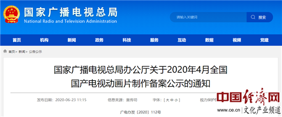 經(jīng)濟日報-中國經(jīng)濟網(wǎng)北京6月24日訊 近日,國家廣播電視總局辦公廳發(fā)布了《國家廣播電視總局辦公廳關(guān)于2020年4月全國國產(chǎn)電視動(dòng)畫(huà)片制作備案公示的通知》(以下簡(jiǎn)稱(chēng)“通知”),通知指出,2020年4月共有45部國產(chǎn)電視動(dòng)畫(huà)片獲得備案。