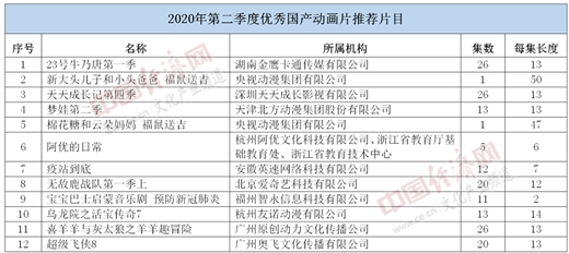 據經(jīng)濟日報-中國經(jīng)濟網(wǎng)記者了解,此次入選的國產(chǎn)動(dòng)畫(huà)片集數最長(cháng)26集,最短1集。根據相關(guān)通知,入選2020年第二季度優(yōu)秀國產(chǎn)動(dòng)畫(huà)片推薦片目的12部作品將優(yōu)先安排在全國各級電視臺上星綜合頻道、動(dòng)畫(huà)少兒頻道、地面少兒頻道播出。