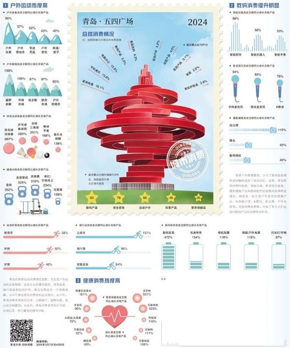 近年來(lái),青島打造了多個(gè)旅游IP,每到節假日,棧橋、太平角、八大關(guān)、五四廣場(chǎng)等景點(diǎn),都會(huì )人頭攢動(dòng)。影音娛樂(lè )、攝影攝像類(lèi)產(chǎn)品的增長(cháng),顯現出青島著(zhù)名旅游城市的底色。人氣足,消費旺,文旅深度融合進(jìn)一步激發(fā)了消費活力。