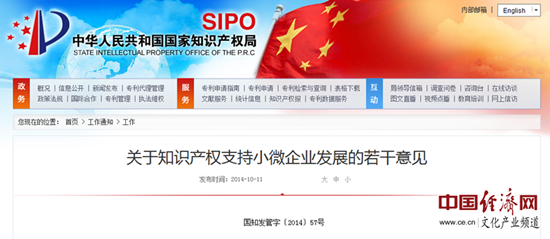中國經(jīng)濟網(wǎng)北京10月14日訊 中國經(jīng)濟網(wǎng)文化產(chǎn)業(yè)頻道記者從國家知識產(chǎn)權局網(wǎng)站獲悉,國家知識產(chǎn)權局近日印發(fā)了《關(guān)于知識產(chǎn)權支持小微企業(yè)發(fā)展的若干意見(jiàn)》(以下簡(jiǎn)稱(chēng)《意見(jiàn)》)。據中國經(jīng)濟網(wǎng)文化產(chǎn)業(yè)頻道記者了解,該《意見(jiàn)》從扶持小微企業(yè)創(chuàng )新發(fā)展、完善小微企業(yè)知識產(chǎn)權服務(wù)、提高小微企業(yè)知識產(chǎn)權運用能力、優(yōu)化小微企業(yè)知識產(chǎn)權發(fā)展環(huán)境4個(gè)方面,提出了支持小微企業(yè)創(chuàng )新成果在國內外及時(shí)獲權、完善小微企業(yè)專(zhuān)利資助政策、扶持知識產(chǎn)權服務(wù)業(yè)小微企業(yè)等15條具體措施。