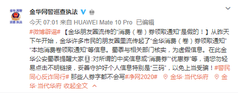 謠言粉碎機三:浙江金華發(fā)放消費券?假的!