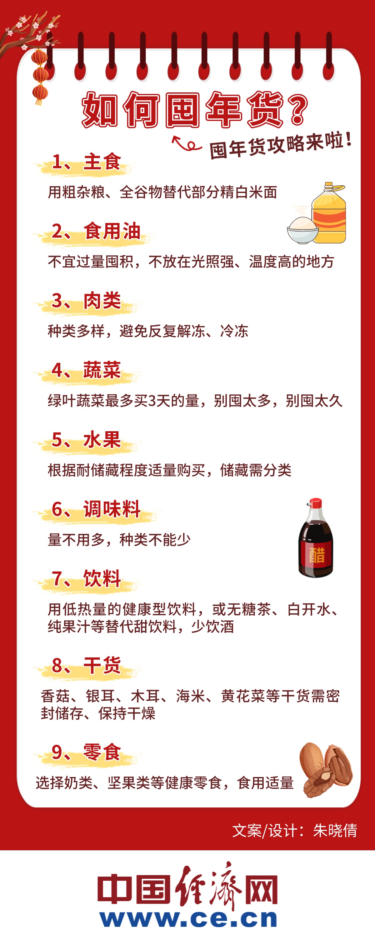 中國經(jīng)濟網(wǎng)北京1月15日訊 (記者 朱曉倩)隨著(zhù)春節的臨近,不少家庭已經(jīng)開(kāi)始囤年貨了。過(guò)年應該囤些什么食物?囤哪些食物才能讓家人一起過(guò)個(gè)健康年?