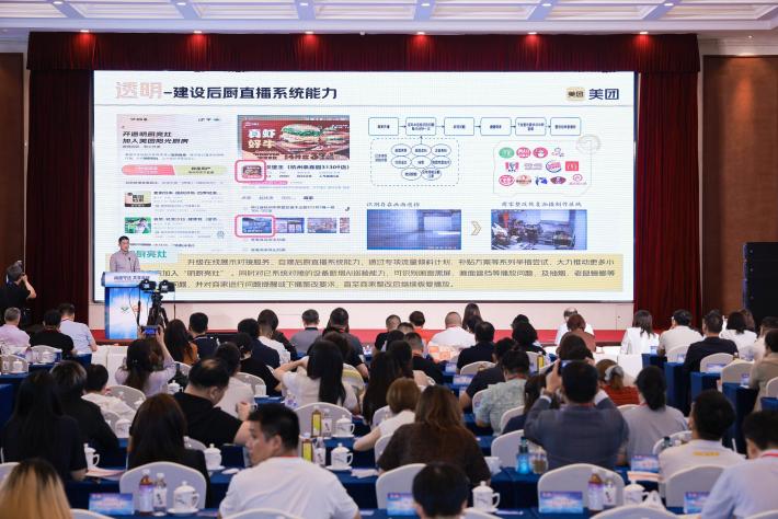 圖為美團外賣(mài)副總經(jīng)理、浣熊食堂負責人初征在會(huì )上介紹美團外賣(mài)在食品安全領(lǐng)域的相關(guān)舉措。