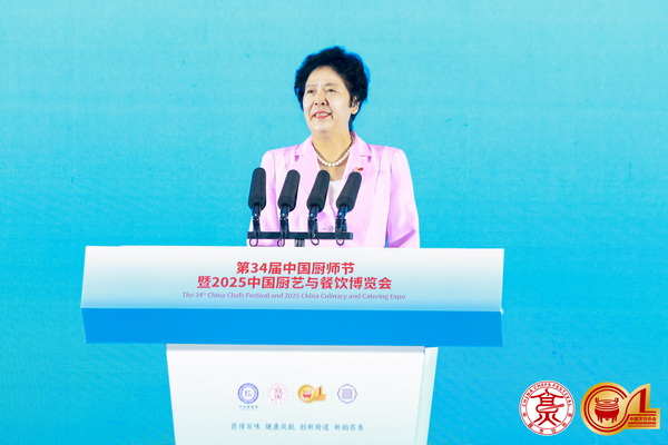 中國烹飪協(xié)會(huì )會(huì )長(cháng)楊柳致辭(中國烹飪協(xié)會(huì )供圖)