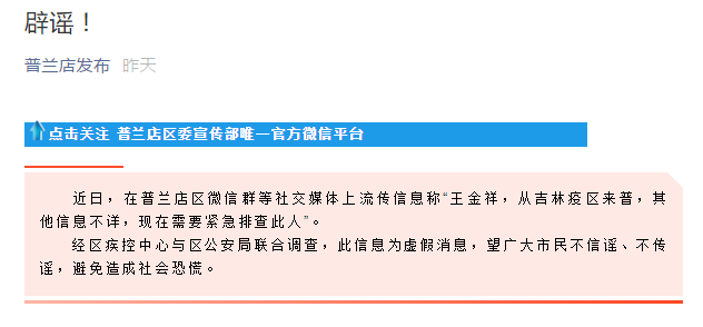 在此,請廣大網(wǎng)友不聽(tīng)謠、不信謠、不傳謠。特殊時(shí)期,發(fā)現造謠現象及時(shí)向網(wǎng)信、公安部門(mén)舉報,共同維護網(wǎng)上清朗環(huán)境,為阻擊疫情貢獻正能量。