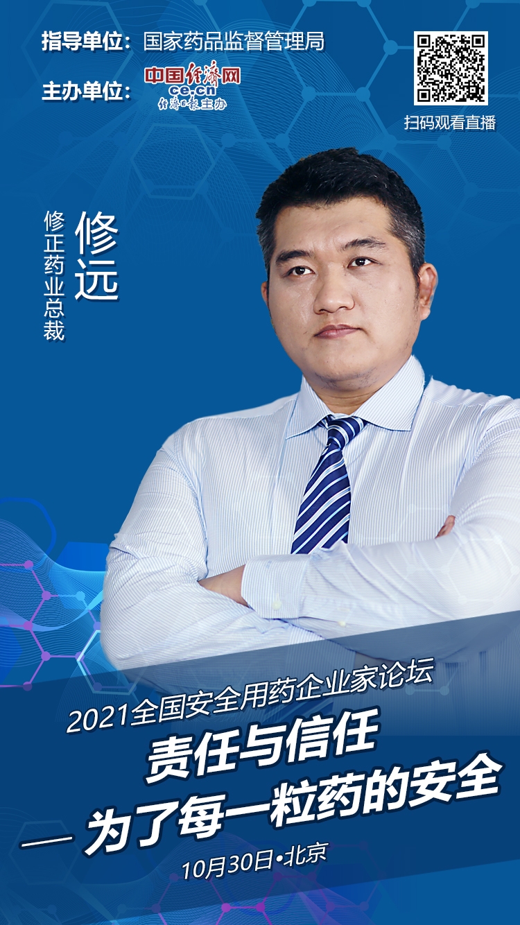 中國經(jīng)濟網(wǎng)北京10月30日訊(記者 郭文培) “安全、有效、可及是藥品的三大根本問(wèn)題。其中,安全是排在第一位的?!?0月30日,在中國經(jīng)濟網(wǎng)舉辦的2021全國安全用藥企業(yè)家論壇上,修正藥業(yè)總裁修遠談安全用藥。他說(shuō),安全用藥,人是根本、原材料是源頭、生產(chǎn)工藝是關(guān)鍵、監督檢驗是保障、科技研發(fā)是引領(lǐng)。