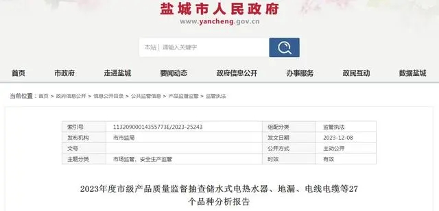 2023年度江蘇省鹽城市家用燃氣具產(chǎn)品質(zhì)量監督抽查分析報告