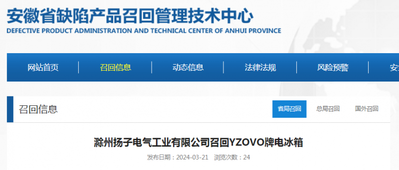2024年03月22日 09:33   來(lái)源:安徽省缺陷產(chǎn)品召回管理技術(shù)中心網(wǎng)站