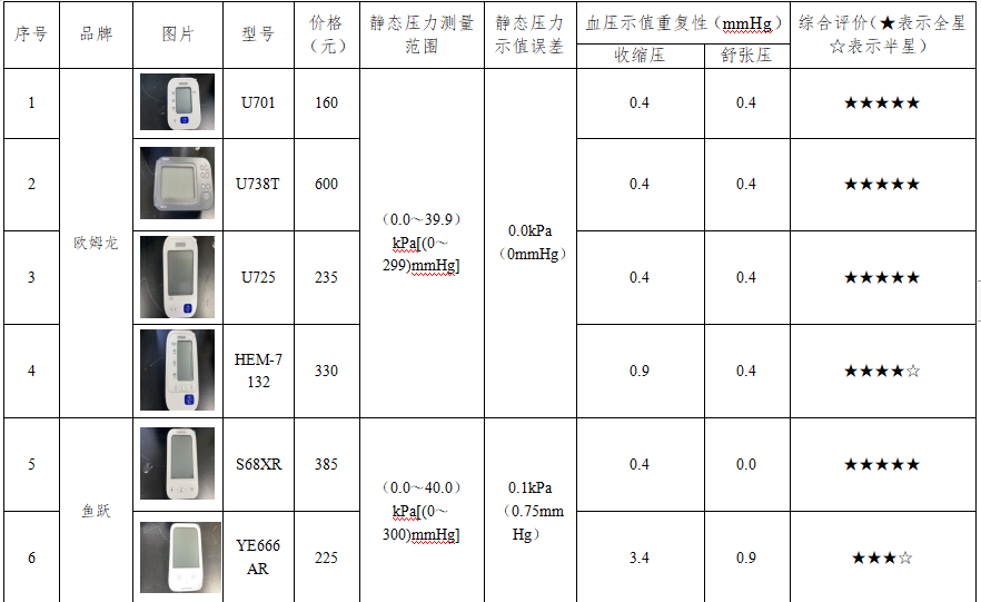 中國消費者報杭州訊(記者鄭鐵峰)臂式電子血壓計因操作簡(jiǎn)便、測量相對準確,成為許多家庭尤其是老年人監測血壓的首選。然而,面對市場(chǎng)上品牌眾多、價(jià)格不一的產(chǎn)品,消費者難以選購。為解答這些疑問(wèn),浙江省寧波市消費者權益保護委員會(huì )近日聯(lián)合寧波市計量測試研究院,對市面上主流的11款臂式電子血壓計開(kāi)展了比較試驗。測試結果顯示,所有樣品均符合相關(guān)國家標準要求,但在具體性能數據上仍存在差異。其中,標稱(chēng)品牌為歐姆龍的U701、U738T、U725型號樣品以及標稱(chēng)品牌為魚(yú)躍的S68XR型號樣品綜合評價(jià)為五星。