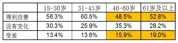 解讀一:過(guò)去一年,46-60歲的市民對食品安全狀況的改善評價(jià)較低
