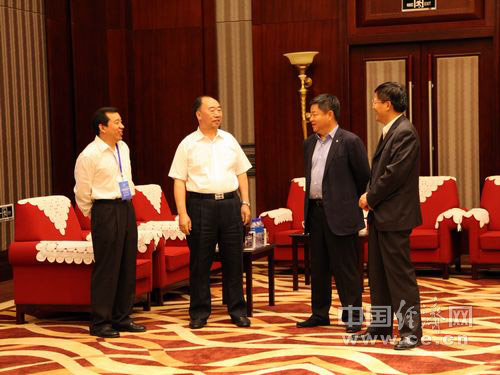 2013年全國食品安全宣傳周啟動(dòng)儀式暨第五屆中國食品安全論壇6月17日在北京舉辦,今年主題為“社會(huì )共治 同心攜手維護食品安全”。圖為論壇嘉賓中糧集團董事長(cháng)寧高寧(右二)與經(jīng)濟日報社社長(cháng)徐如俊,經(jīng)濟日報社副總編輯丁士,中國經(jīng)濟網(wǎng)總裁王旭東交流。 中國經(jīng)濟網(wǎng) 王耀峰/攝