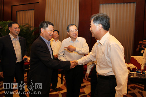 國務(wù)院副總理汪洋和中糧集團董事長(cháng)寧高寧交流